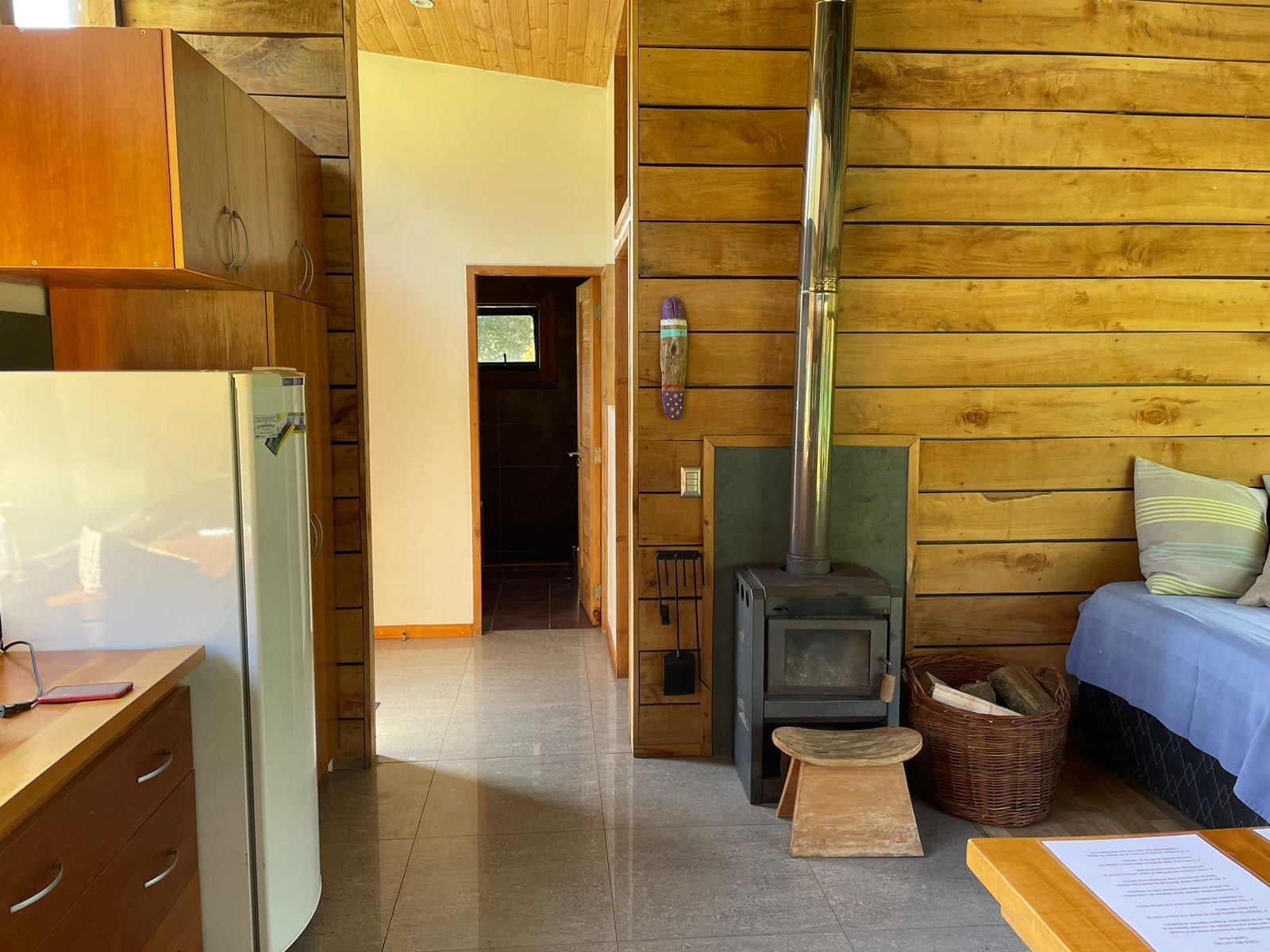 • Primer piso: cocina integrada al comedor equipada, baño con ducha, estufa a combustión lenta