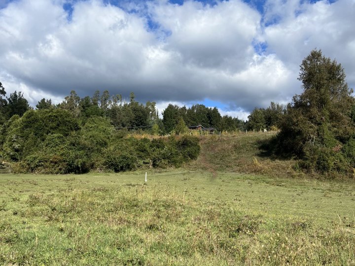 Propiedad única por su topografía y recursos hídricos. Presenta una suave loma en la parte alta que desciende hacia una zona baja completamente plana, la cual colinda con un estero y está rodeada de bosque nativo. Además, cuenta con ojo de agua propio, ideal para implementar laguna ornamental, huert...